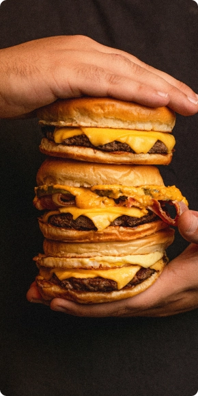 Para valorizar as combinações clássicas que oferecemos, nossos sanduíches são montados em pão macio carimbado com um stencil em brasa, enquanto os discos de carne recebem cuidado especial e são preparados através de uma técnica chamada de Smash Burger, comum nos Estados Unidos, e que chegou ao Brasil pelas mãos do Bullguer.